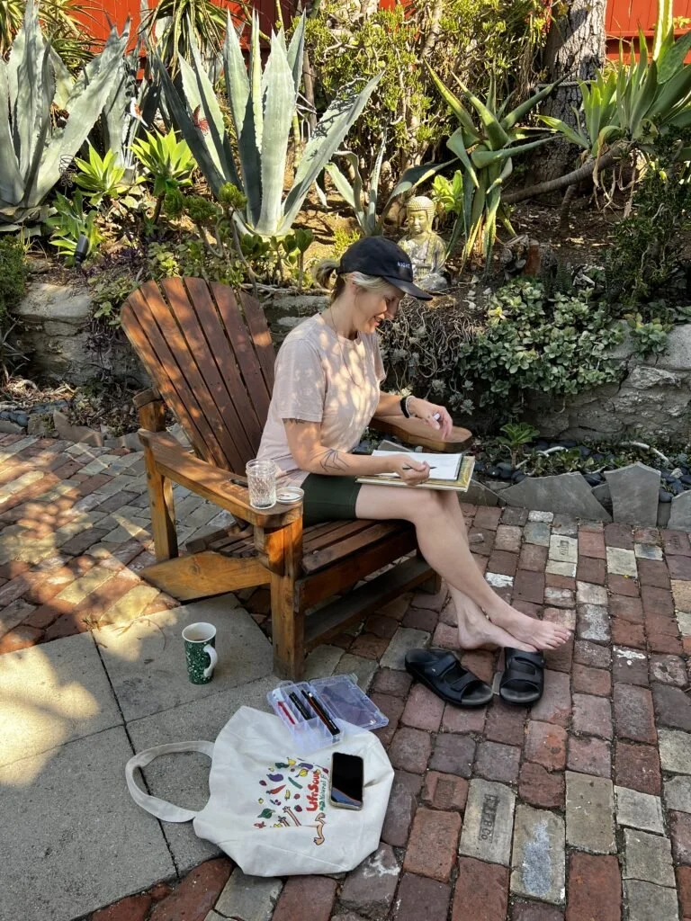 September: A talk by painter Hayley Barker in the garden. Hayley was the first artist at the Latitude For Art residency in Laguna Castle. Hayley’s time here led on to her debut exhibition with L.A.’s Night Gallery in 2023. Her show titled “Laguna Castle”, explored the natural and human environment of a unique residency offered by Latitude For Art.